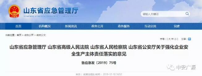 12月9日,为进一步强化企业安全生产主体责任落实,根据《安全生产法》《山东省安全生产条例》《山东省生产经营单位安全生产主体责任规定》等规定,山东省应急厅、省高院、省检...